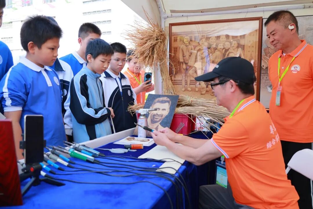 走進(jìn)勞動教育成果展示與互動體驗區(qū),傳統(tǒng)工藝與現(xiàn)代科技相映成趣。掐絲琺瑯、嶺南扎染等非遺項目展示區(qū)前排起長隊,無土栽培、AI養(yǎng)魚等科技項目同樣人氣爆棚。