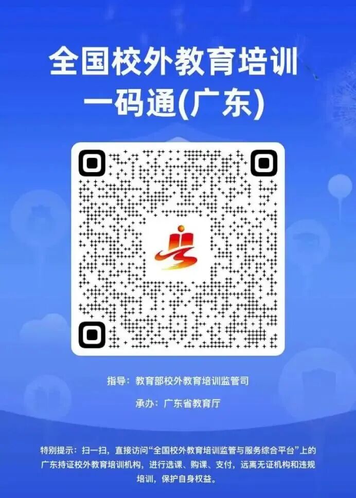 全國校外教育培訓(xùn)“一碼通”(廣東)是依托全國校外教育培訓(xùn)監(jiān)管與服務(wù)綜合平臺(簡稱“全國平臺”)建設(shè)的官方二維碼,家長學(xué)生可通過微信、支付寶“掃一掃”功能,一鍵直達全國平臺家長端,快速查詢?nèi)珖脚_持證機構(gòu)的各類信息,“一站式”便捷開展在線選課、支付、合同簽訂、退費等校外教育培訓(xùn)服務(wù)。