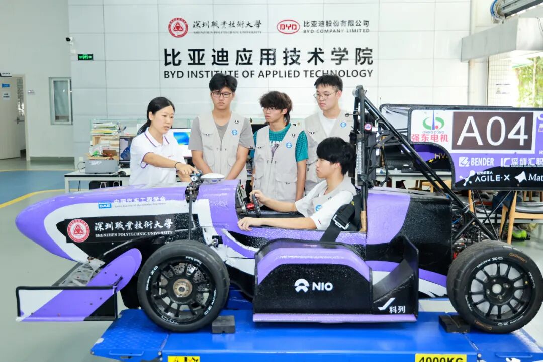 比亞迪應(yīng)用技術(shù)學(xué)院教師張亞琛指導(dǎo)深圳職業(yè)技術(shù)大學(xué)魅影方程式賽車隊(duì)改進(jìn)方程式賽車,該車隊(duì)已連續(xù)多年獲得全國(guó)大學(xué)生方程式大賽獎(jiǎng)項(xiàng)。