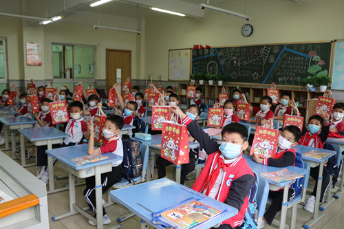 課間,老師們向?qū)W生派送返校禮包,歡迎孩子們重返校園,開(kāi)心地與同學(xué)們面對(duì)面暢聊,交流網(wǎng)課期間的學(xué)習(xí)情況,傾訴彼此的思念之情和返校后的激動(dòng)心情。
