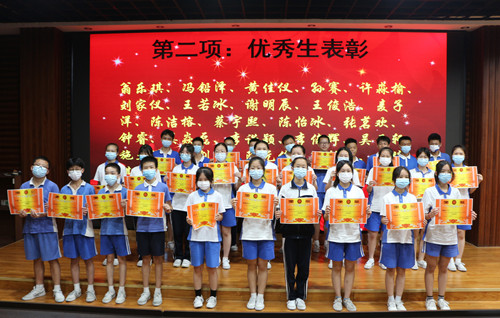 會(huì)上舉行了優(yōu)秀學(xué)生表彰儀式,吳建平常務(wù)副校長(zhǎng)和陳炯副校長(zhǎng)為八年級(jí)優(yōu)秀學(xué)生頒發(fā)了獎(jiǎng)狀。