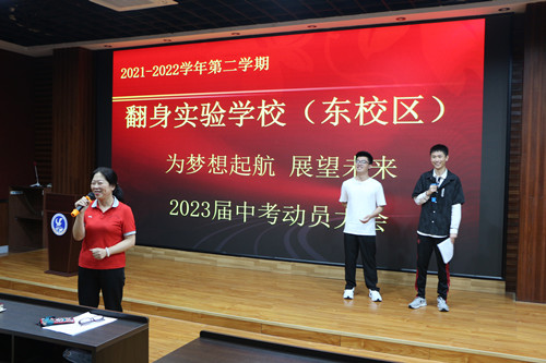 6月21日下午,翻身實(shí)驗(yàn)學(xué)校(東校區(qū))舉行了“為夢(mèng)想起航,展望未來(lái)”2023屆中考動(dòng)員大會(huì)。梁景熙和徐金澤再次相聚母校,與八年級(jí)的學(xué)弟學(xué)妹們分享自己的學(xué)習(xí)心得。