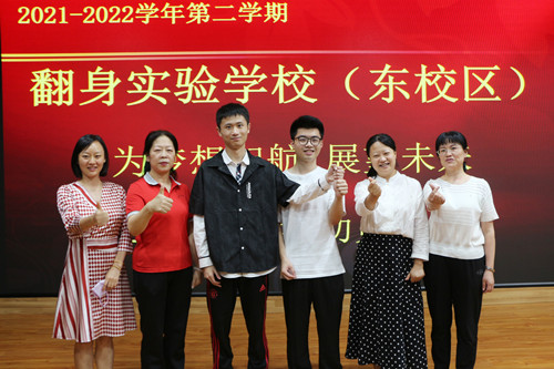 2022年高考結(jié)束后,心系母校的2019屆校友,相約返回翻身實(shí)驗(yàn)學(xué)校(東校區(qū))看望校領(lǐng)導(dǎo)和恩師。即將赴美求學(xué)的梁景熙同學(xué)與同屆的徐金澤同學(xué)為表達(dá)對(duì)母校的感恩之情,約定一同回母校分享自己的學(xué)習(xí)經(jīng)驗(yàn)和感悟,傳遞“翻身”精神。