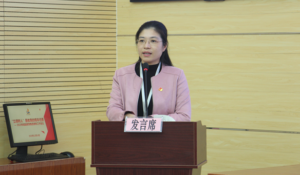 翻身實驗學校(西校區(qū))普九部德育處主任方珊作《不忘初心 立德立本 樹人為先》主題匯報。