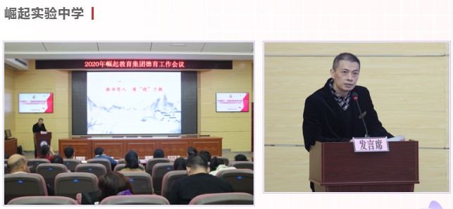 會議由崛起實驗中學常務副校長、學校黨支部書記李程同志主持,集團金牌名師陳勇和三校德育主任匯報了2020年度學校德育工作的亮點。